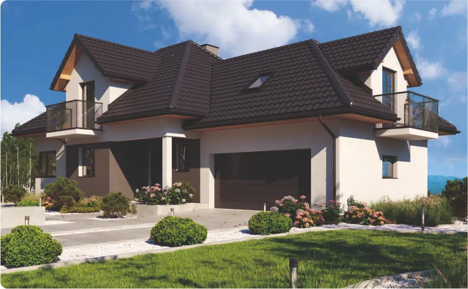 Профнастил Aria — модульная кровля с изысканным рельефом, подчёркивающим архитектурную выразительность.