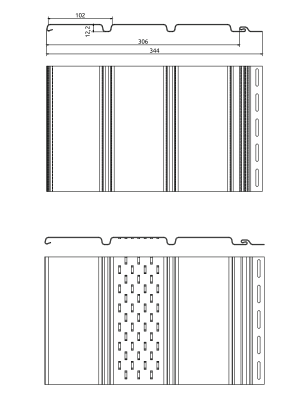 Панели (сплошные и перфорированные) обеспечивают аккуратный вид и вентиляцию подкровельного пространства. Софиты легко монтируются, не деформируются и сочетаются с кровлей и водостоками. Доступны в разных цветах и покрытиях для любого фасада.